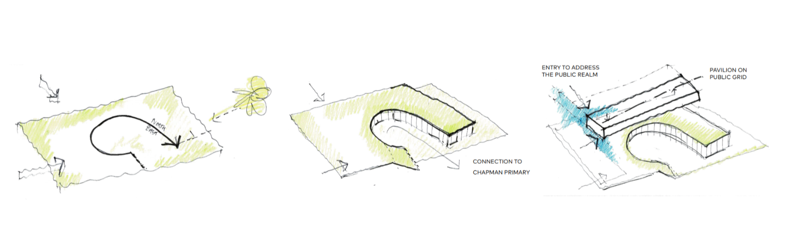 During the early concept stages, the design evolved through a close reading of orientation, community, and connection—each becoming a driver of the project.